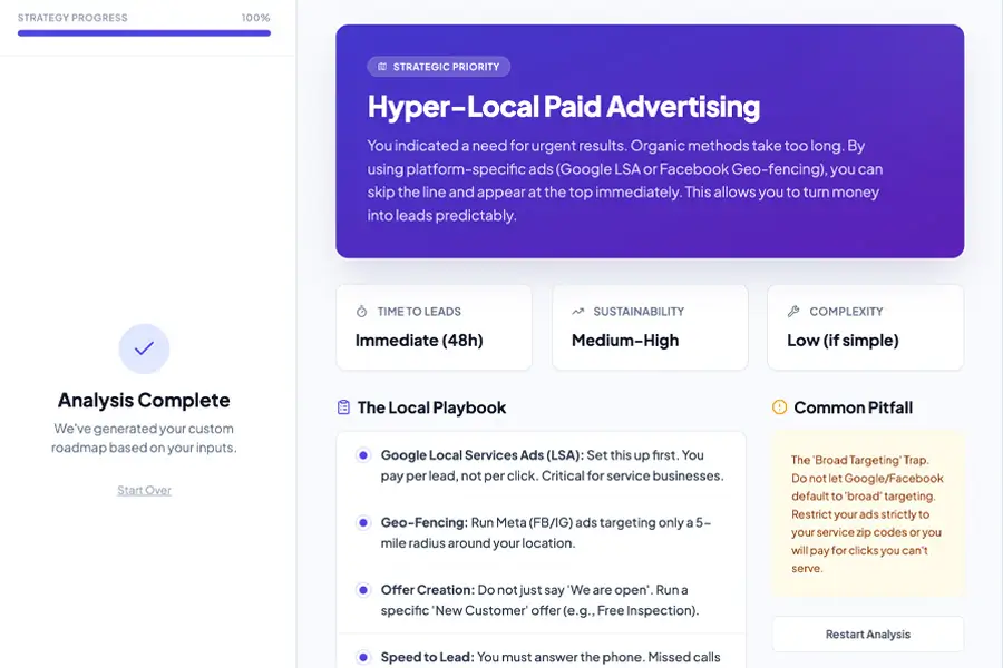 Identify what you should work on first in your marketing right now. Cuts through overwhelm and gives you a clear next step.
