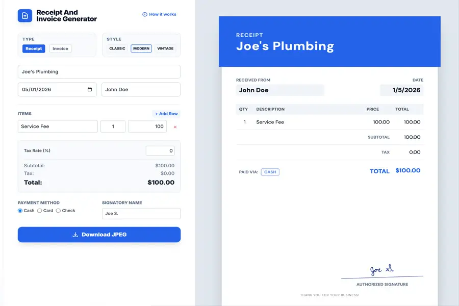 Generate professional receipts and invoices instantly without complicated software. Stay organized and look more credible with every transaction.